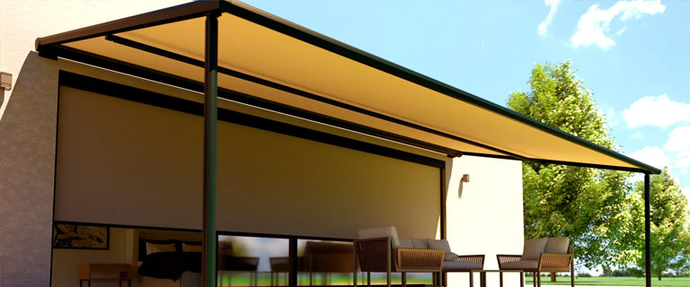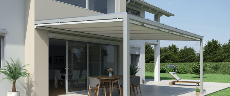 Die Pergolamarkise kombiniert Markise und Terrassendach – sie besitzt vorne eigenen Pfosten und wird an Wand oder Decke montiert. Ideal für große Terrassen und windige Standorte, wo klassische Markisen an ihre Grenzen stoßen. Vor allem bei einem Ausfall von über 4 Metern.